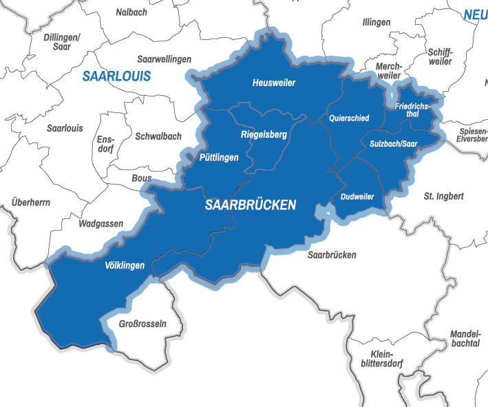 Unser Einzugsgebiet erstreckt sich auf den Großraum Saarbrücken, insbesondere auf die Regionen Dudweiler, Sulzbach, Quierschied, Friedrichsthal, Heusweiler, Riegelsberg, Püttlingen, Völklingen und den Warndt sowie angrenzende Stadtteile der Landeshauptstadt. In Einzelfällen sind wir auch in den Landkreisen Saarlouis, Neunkirchen und Saarpfalz tätig. Die zentrale Verwaltung und Geschäftsführung der Lebenshilfe Sulzbach-Völklingen gGmbH befindet sich in Heusweiler-Holz, Am Wasserturm 5. Hier werden alle organisatorischen, administrativen und strategischen Aufgaben für die beteiligten Organisationsteile koordiniert und weiterentwickelt.